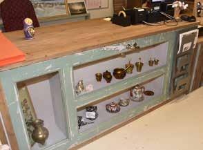 Hun forteller at butikken får mange fine gjenstander, de fleste av dem framstår som nye der de står i hyllene.