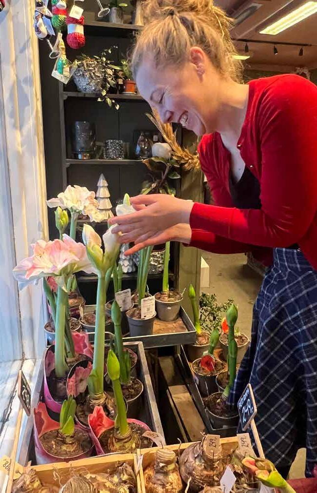 STELL: Amaryllis krever lite stell, men gir mye glede, forsikrer blomsterhandler Olaug Furusæter.