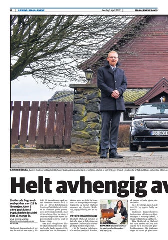 nå trenger vi hjelp igjen», sier Skullerud. Da er det viktig å gjøre et godt inntrykk og opptre høflig og korrekt. Skulleruds Begravelsesbyrå har kontorer på Løken og Bjørkelangen i Aurskog-Høland, i tillegg til Skjønhaug og Mysen. Både Skullerud og Olafsrud har klare tanker om hva som skal til for å lykkes som gravferdskonsulent. Når telefonen ringer er byrået på plass etter