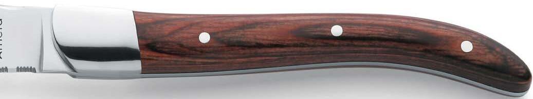 At the very end of the production process, the SABATIER TROMPETTE knives benefit from a manual leather polishing of the blade edges. This careful operation enhances the cutting performances and guarantees an excellent finishing.