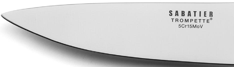 All the SABATIER TROMPETTE blades are made of a highquality steel perfectly adapted to a professional and intensive use. The molybdenum vanadium (MOV) increases the hardness and the flexibility of the blade to keep optimum cutting performances through the time. MOV is also easier to sharp.