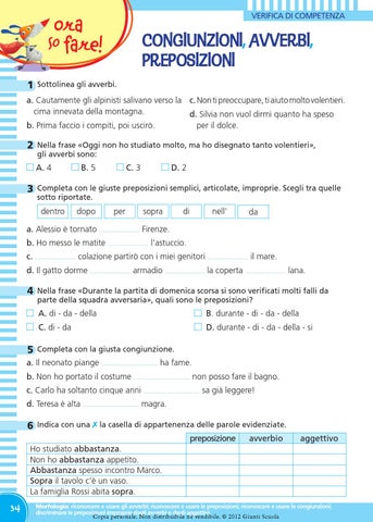 Morfologia: riconoscere e usare gli avverbi; riconoscere e usare le preposizioni; riconoscere e usare le congiunzioni; discriminare le preposizioni improprie dagli avverbi e dagli aggettivi.