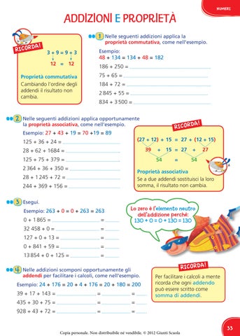 seguenti addizioni applica la 1 Nelle proprietà commutativa, come nell’esempio. Esempio: