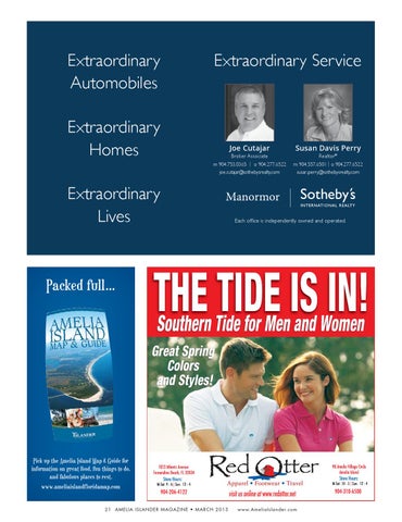 Pick up the Amelia Island Map & Guide for information on great food, fun things to do, and fabulous places to rest. www.ameliaislandfloridamap.com 21 AMELIA ISLANDER MAGAZINE • MARCH 2013