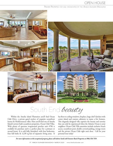 For more information on this exceptional property, please call Andrew Sands with Summer Beach Properties at (904) 556-7559. 77 AMELIA ISLANDER MAGAZINE •