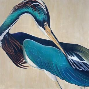 her 72 in. x 96 in. oil on linen, “Garlic and Tonic,” selected for a November exhibition at the renowned Salmagundi Club in New York City. Meanwhile, she is completing her own 48 in. x 48 in. great room oil painting centerpiece: a copy of Audubon’s “Louisiana Heron.” She was accepted as an Exhibiting Artist at the Island Art Association in June, and you can also see her work at www. ameliaislandartist.com.