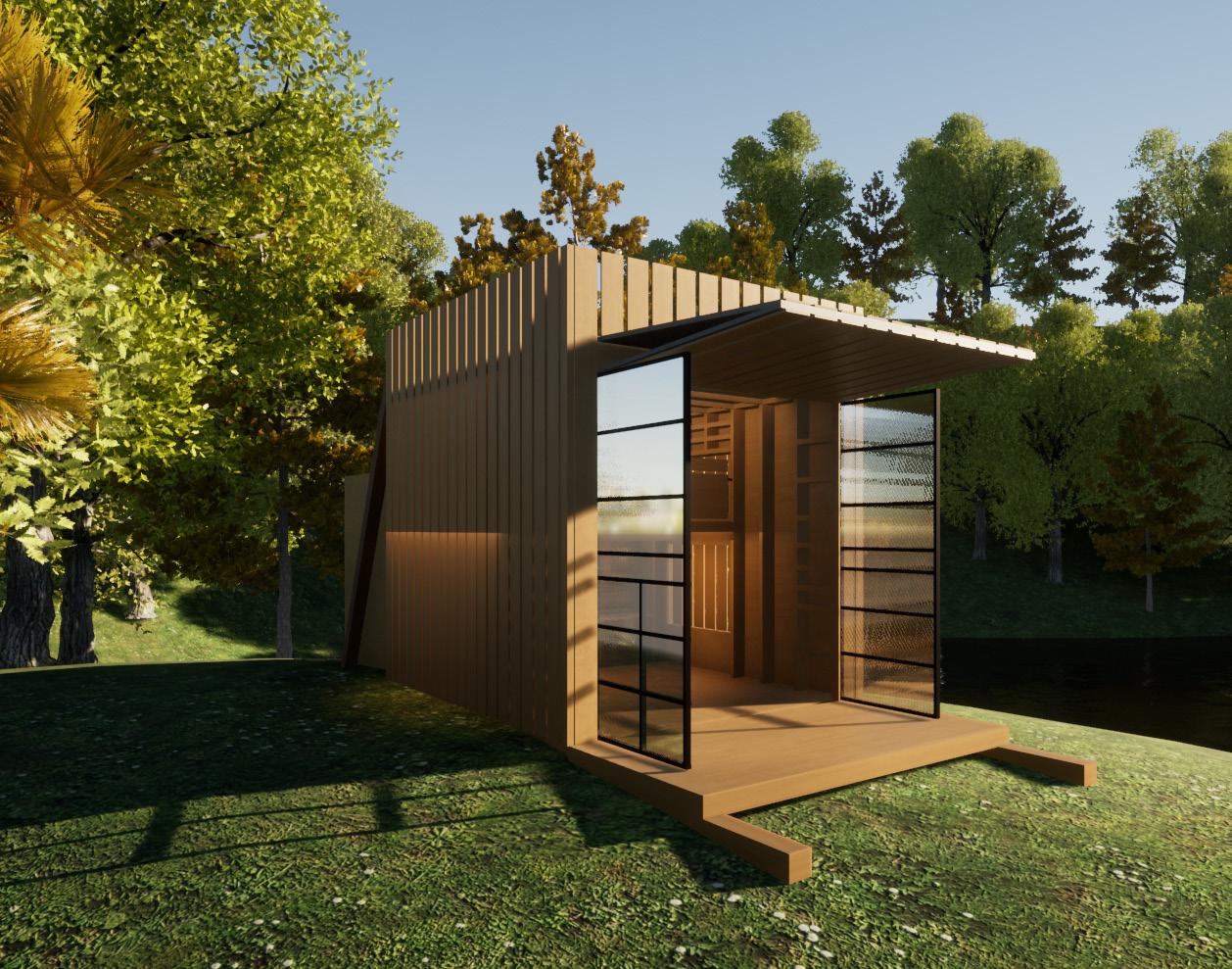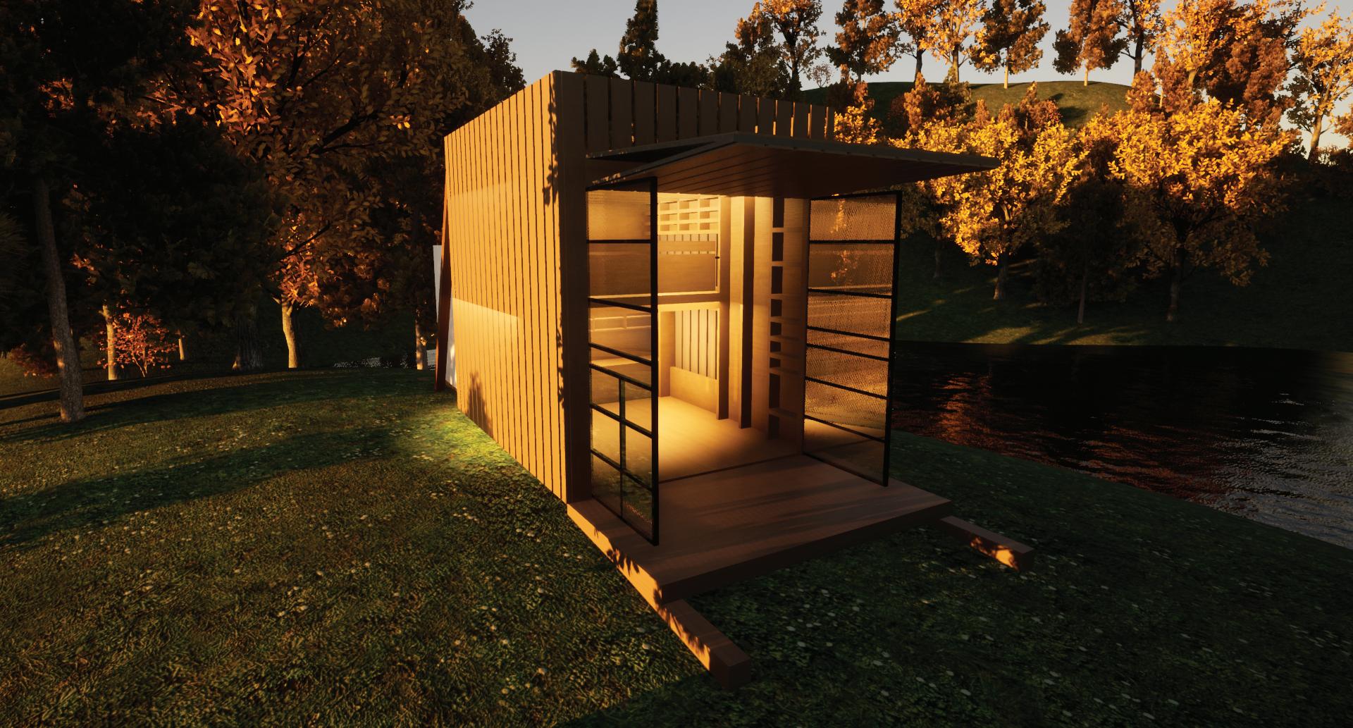 As a part of C_ABE at Thomas Jefferson University, students entered a cabin competition and placed their cabins in a Pennsylvania State Park of their choosing. Students replicated their cabins using Rhinoceros to model, then rendered using Twinmotion.