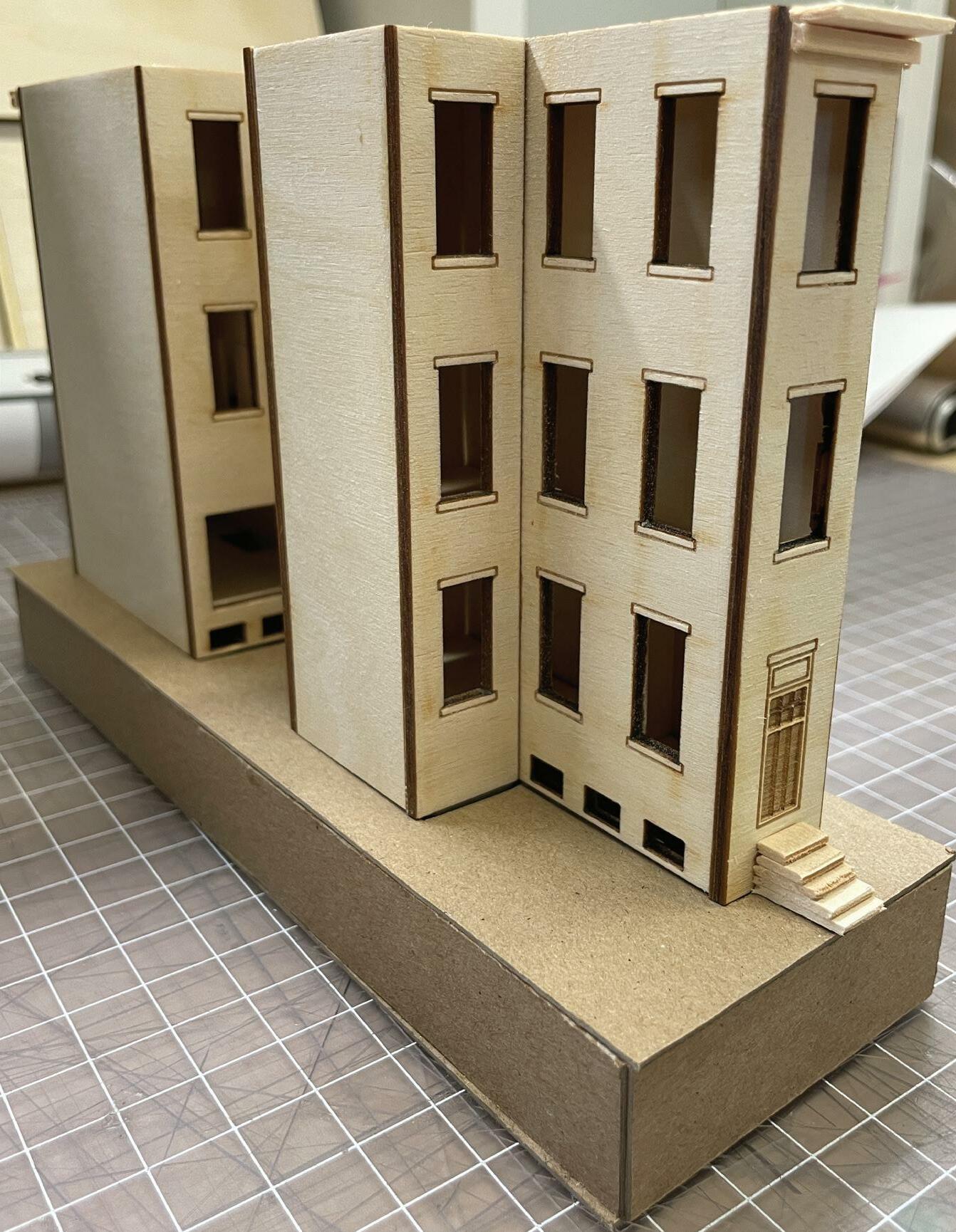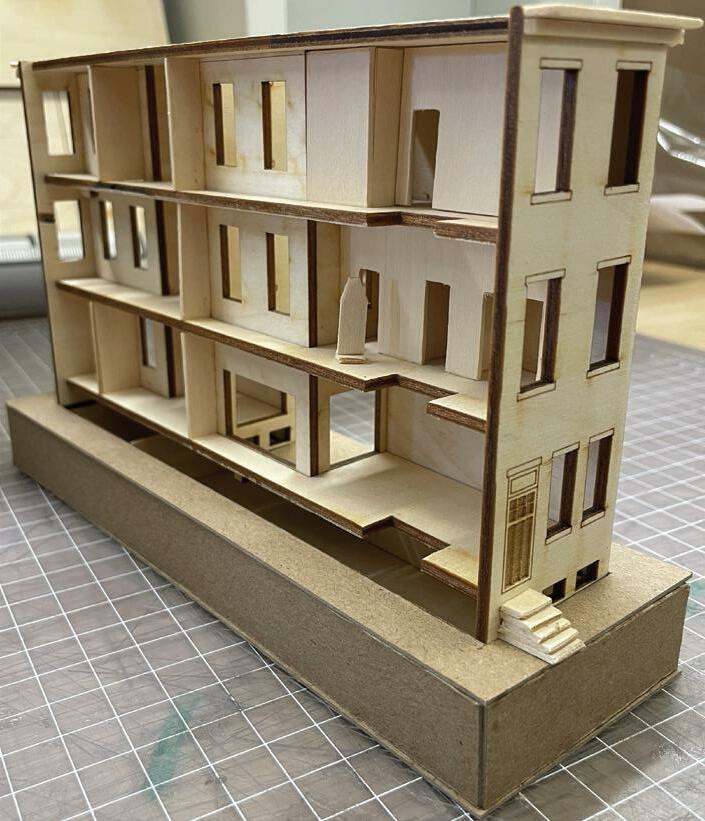 From the neighborhood of Sharswood, students chose a group of clients to design a rowhome that fits their needs. This specific rowhome houses Morgan, a 2-1/2 year old girl, and her parents, with frequent visits from her grandmother. The multigenerational family needed a space to fit all of their needs, including an office space, a first floor bedroom for grandma, plenty of space for Morgan and her toys, and extra space for a small gym.