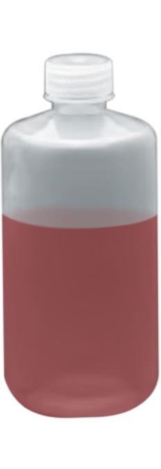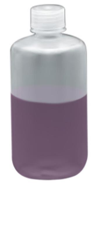 This autoclavable bottle, made of polypropylene, has thick walls, is rugged and can be used for repeated applications of vacuum.