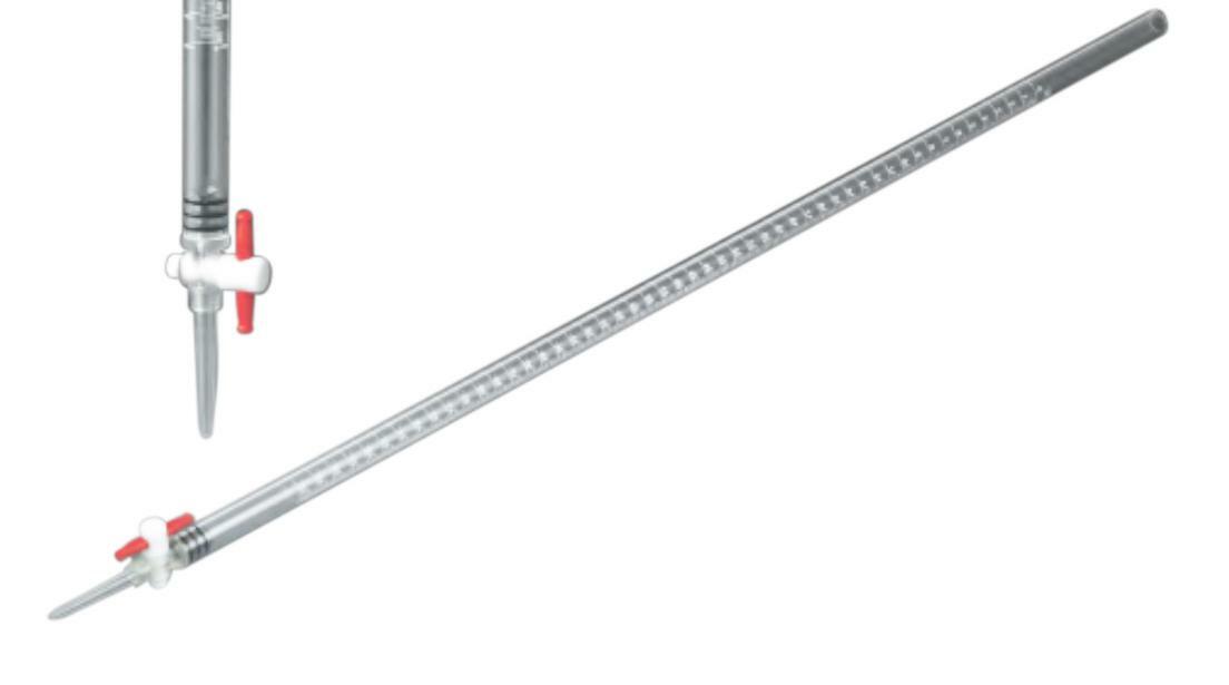 This Burette has a transparent acrylic pipe and a leak-proof PMP stopcock fitted with a self lubricating PTFE Plug. Each Burette is individually calibrated to give maximum accuracy. Acrylic body is unaffected by dilute mineral acids and bases except Hydrofluoric Acid and Ammonium Hydroxide. The pH range 1-14 is ideal and can be used up to 5% wt/wt of acids or 30% bases.