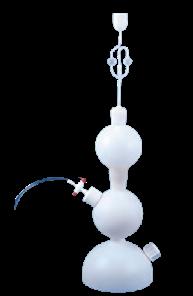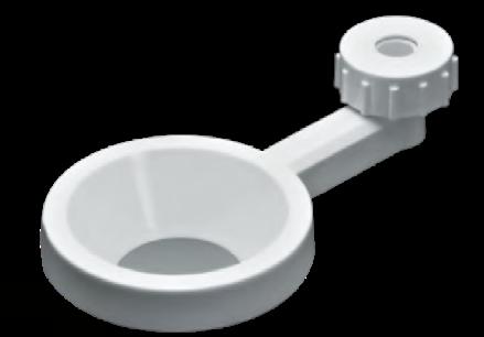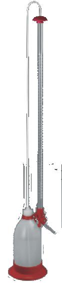 Schilling Burette consists of a one liter bottle made of polyethylene, a filling tube, a calibrated burette with Zero point suction, a discharge nozzle and a lever mechanism for rapid discharge. The burette is filled simply by squeezing the bottle. As soon as the bottle is released, the liquid is sucked up until the burette is set to zero. Excess liquid drains back through the delivery tube into the bottle.