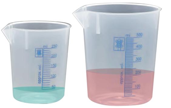 Beakers are also available in printed graduations. This printed scale is a prominent feature in addition to the excellent clarity and chemical resistance. These beakers are autoclavable as well as stackable which allows space saving packaging.