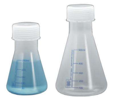 Made of Polypropylene, these conical flasks are rigid, translucent and autoclavable. The screw cap keeps the contents of the flask contamination free and the built in seal ring makes it a leak-proof proposition. Threads should be disengaged before autoclaving.