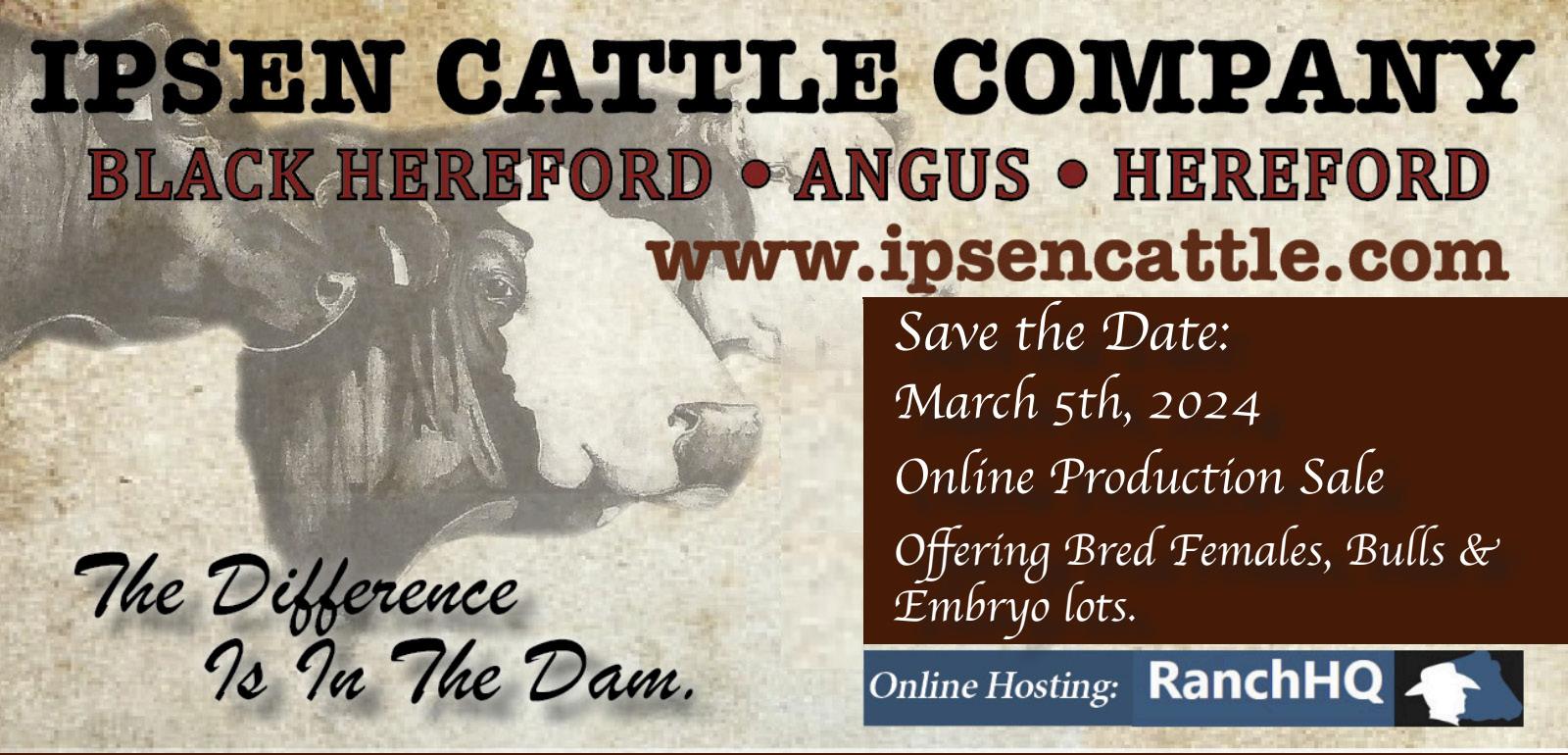 Ipsen Cattle Company would like to extend a huge thank you to all the bidders and buyers in our 2024 online production sale. Black Hereford Cattle were sold to Missouri, Kansas, Montana, Nevada, and Idaho.