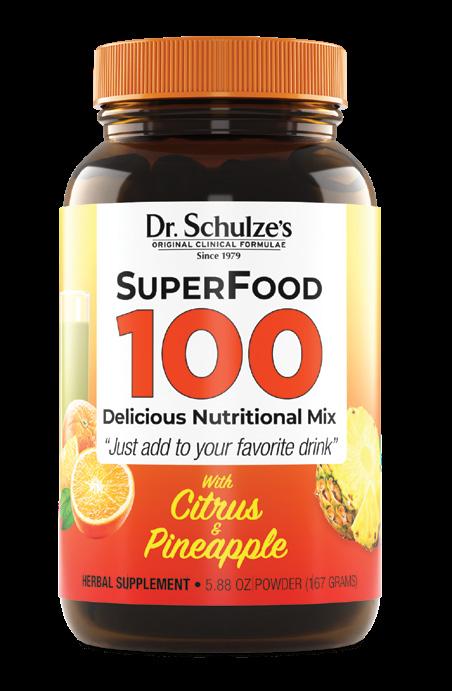 If you’re someone who needs a very quick, great tasting, easy drink filled with fruits, vegetables, and Vitamin C, try Dr. Schulze’s Superfood 100 Powder. Simply add water, shake it up, and enjoy the refreshing taste of pineapple and citrus.