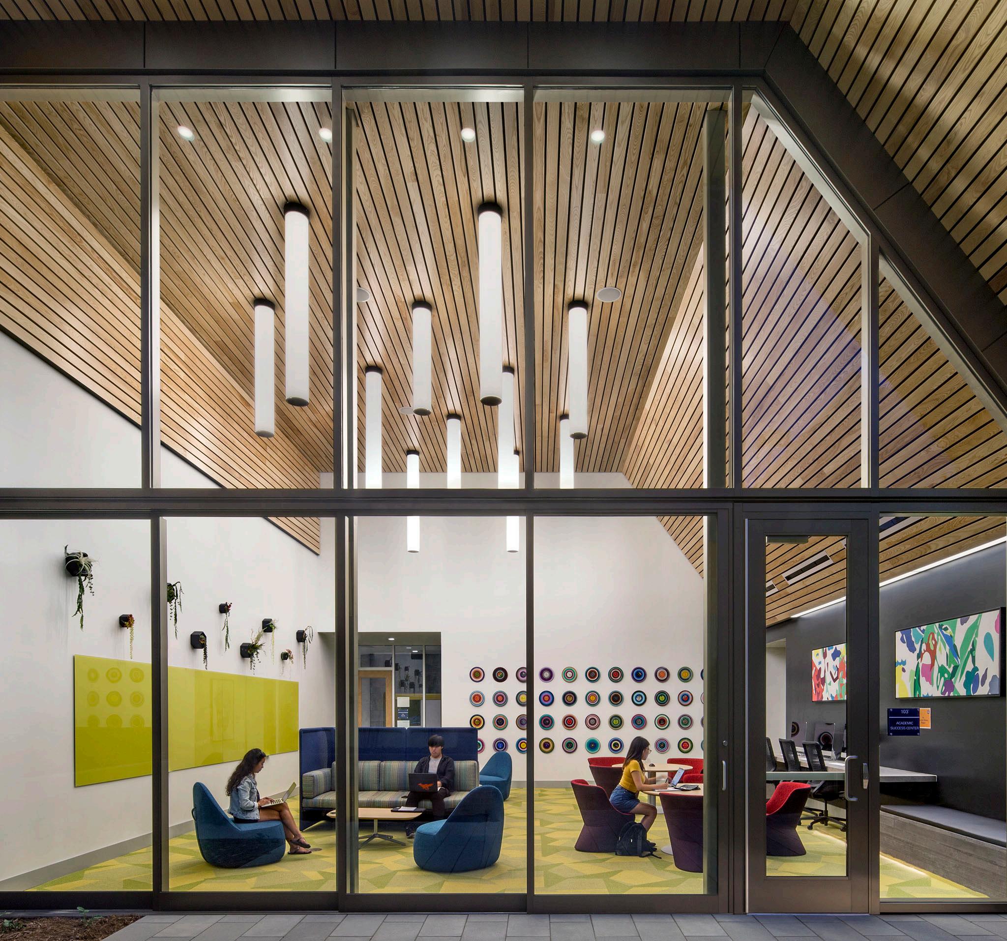 Plaza Verde features a mix of apartment-style floor plans to accommodate varying student needs and budgets. Phase II introduces a four-bedroom unit to the market and offers the most affordable unit at approximately 30 percent below market rates. Preplanned infrastructure completed for Phase I enabled higher density for Phase II — a 44 percent increase in beds per acre. The community includes multiple courtyards and 35,000 sq. ft. of community amenities to support residents’ academic, wellness and social development. The all-electric building complies with UC’s carbon-neutrality policy and incorporates sensible energy-efficient design and operation features, including rooftop photovoltaic arrays to help achieve net zero emissions. Phase I achieved LEED Gold certification, and Phase II is tracking LEED Platinum certification.