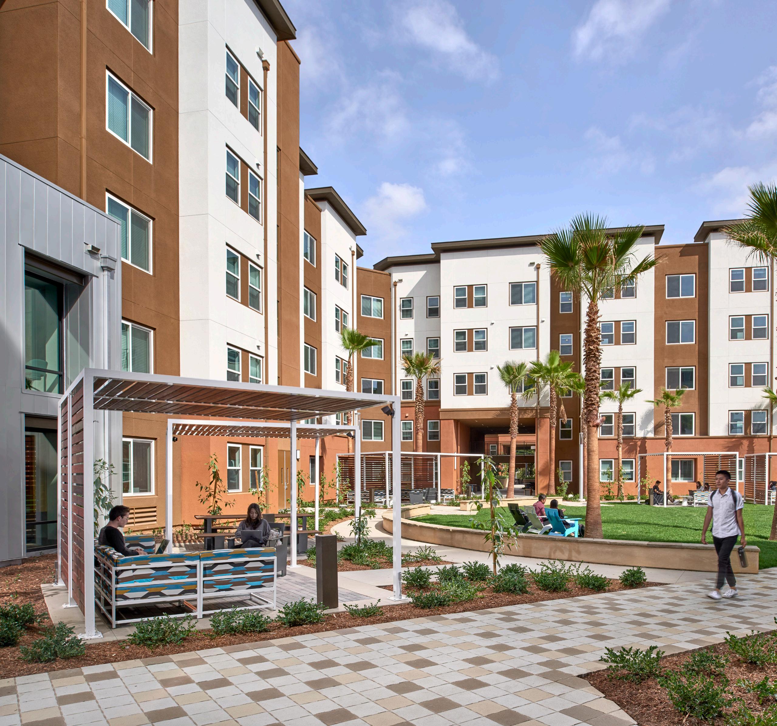 Since 2004, ACC has partnered with UC Irvine to master plan, develop and manage more than 7,600 on-campus beds, creating a supportive, purpose-built living environment for UC Irvine students sustained by a lasting and innovative P3. Home to more than 2,500 residents, Plaza Verde continues UC Irvine’s initiative of maintaining and expanding a sustainable, affordable and academically oriented on-campus residential experience. Phase I opened in Fall 2019 and Phase II will open in Fall 2023.