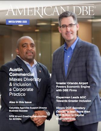 Other stories in this issue highlight WSP USA and Archer Western’s success in creating extensive opportunities for DBEs on the DART Silver Line Project; the successful journey of ACDBE operator Tyrone Nabbie, president and CEO of Superior Hospitality, leading to a growing partnership with Delaware North. The final story shares the increasing prevalence of progressive design-build contracting in the highway industry.