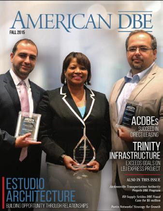 American DBE Magazine is the premier industry resource for individuals and stakeholders who work in the infrastructure, construction and transportation industries. American DBE Magazine is published quarterly and distributed in all 50 states— plus Puerto Rico and the U.S. Virgin Islands—to DBE program administrators, business owners, and professionals in the Aviation, Highway Construction and Public Transit industries. Advertisting