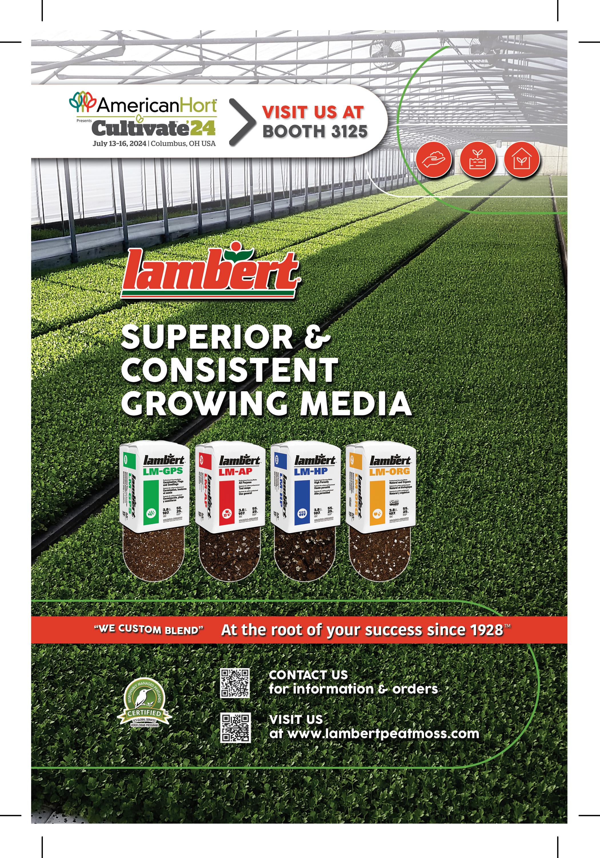 AmericanHort has worked hard to ensure all information contained in the Cultivate’24 onsite guide is accurate. It is possible some details provided in this guide have changed since going to print. We apologize for any inconvenience missing or inaccurate information may cause you. If you have any questions, please ask at the Cultivate’24 registration desk, check the Cultivate’24 app, or visit AmericanHort.org/Cultivate