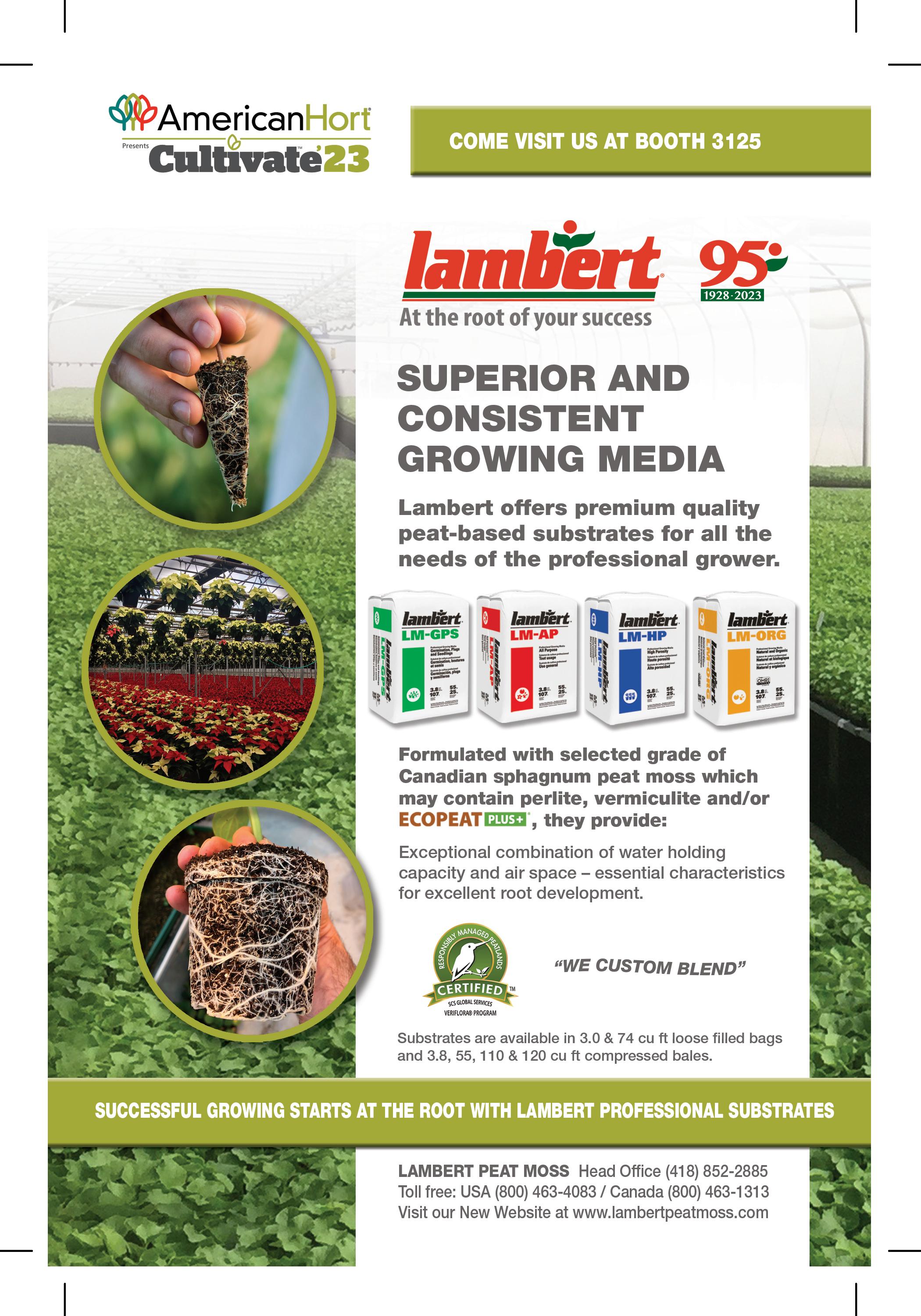 AmericanHort has worked hard to ensure all information contained in the Cultivate’23 onsite guide is accurate. It is possible some details provided in this guide have changed since going to print. We apologize for any inconvenience missing or inaccurate information may cause you. If you have any questions, please ask at the Cultivate’23 registration desk, check the Cultivate’23 app, or visit AmericanHort.org/Cultivate