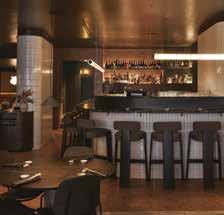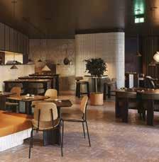 sustainability as the designers have used reclaimed wood for the ceiling and recycled leathers for the settees.