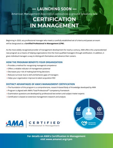 For details on AMA’s Certification in Management visit www.amanet.org/cpm