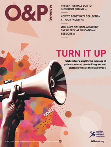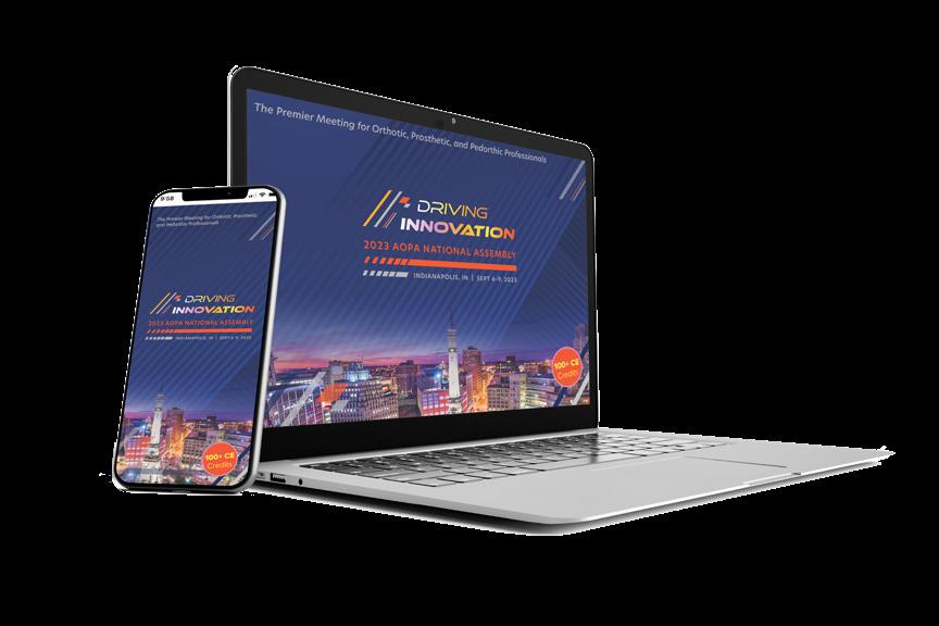 CHANGES TO MEDICARE ADVANTAGE PLANS FOR 2024 16 HOW O&P CAN ADAPT AND MOVE FORWARD 28 TRANSFORMATIONS: PROSTHETIST LEVERAGES MOTIVATION AND MOBILE CARE FOR OPTIMAL OUTCOMES 48 AOPAnet.org AUGUST 2023 The Magazine for the Orthotics & Prosthetics Profession SPECIAL SECTION: 2023 AOPA NATIONAL ASSEMBLY EXHIBITOR PREVIEW P.32