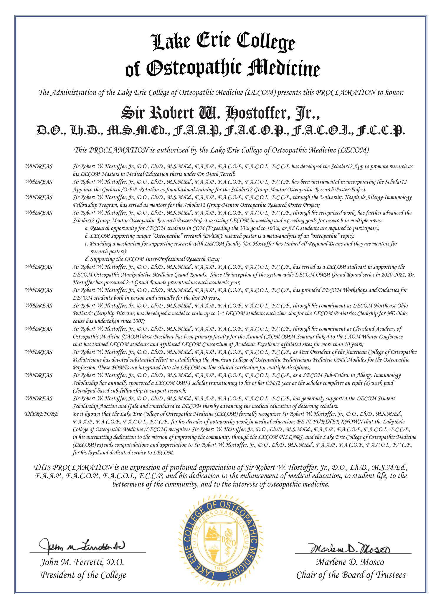Excellence: We recognize and honor excellence in education, research and lifetime contributions to the Osteopathic profession.