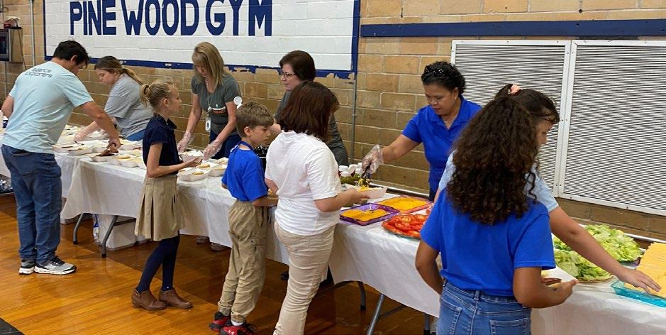 AMERISAFE volunteers at Pine Wood Elementary, serving hot dogs and hamburgers to members of the Science Explorers Club during their BBQ celebration.