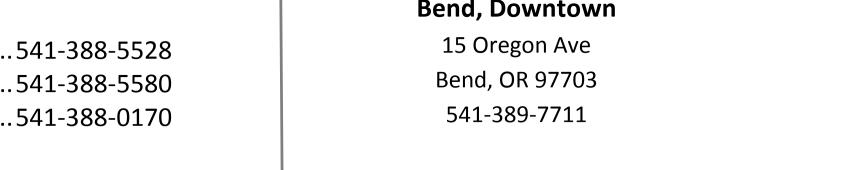 Bend, Downtown 15 Oregon Ave. Bend, OR 97703 541.389.7711