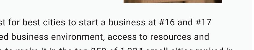 BEND IS ONE OF SIX SMALL CITIES IN THE U.S. THAT RANKED HIGHEST OF ALL 1,334 CITIES FOR THE MOST STARTUPS