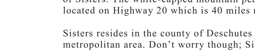 PARK & RECREATION DISTRICT SISTERS PARK & RECREATION DISTRICT (541) 549-2091 1750 W. McKINNEY BUTTE RD, SISTERS, OR 97759