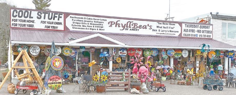 JUNE 9 – JUNE 23, 2023 | THE LAKER 7A HealthPartners Timesavers Video visits | Online scheduling | Mobile check-in healthpartners.com/timesavers PhyllBea’s of Amery Home Décor • Antiques • Jewelry • Furniture • Scrap Metal Art Your Cabin Decor Headquarters Over 2500 Square Feet