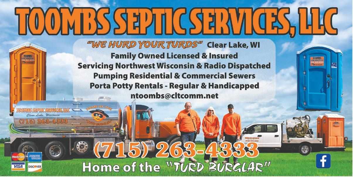 Adamark Auto Repair ATV, Snowmobile, dirt bike parts & repair, tire alignment, engine & transmission, tune-ups. 715-646-1525 1725 Hwy 35 Centuria, WI 54824 STUMPGRINDING &TREESERVICE 715-554-1020 Mark Adams Boats Pontoons Cars Snowmobiles Pick-Up • Delivery Pontoon Trailer Rental • Winterizing INDOOR STORAGE HALF MOON LAKE RESORT - MILLTOWN 715-825-3737 • 715-497-0653 Red Wing & Irish Setter Boots, Minnetonka Moccasins, Western Boots for the Whole Family Western Apparel, Accessories, Hats, Jewelry, Gifts & More Quality New or Used Saddles, Large Selection of Tack & Horse Care Products Ph: 715-472-8199 113 Main St. S., Luck, WI 54853 Paulette & Craig Adair Follow us www.lucksaddlery.com Expert Shoe, Saddle & Leather Repair MILLTOWN HARDWARE We have you covered. Stop by today! 715-825-2020 50 Main St W Milltown, WI OLSON SEWER 715-857-5863 2083 100th St. Luck, WI 54853 FULL SERVICE PORTABLE TOILET RENTAL