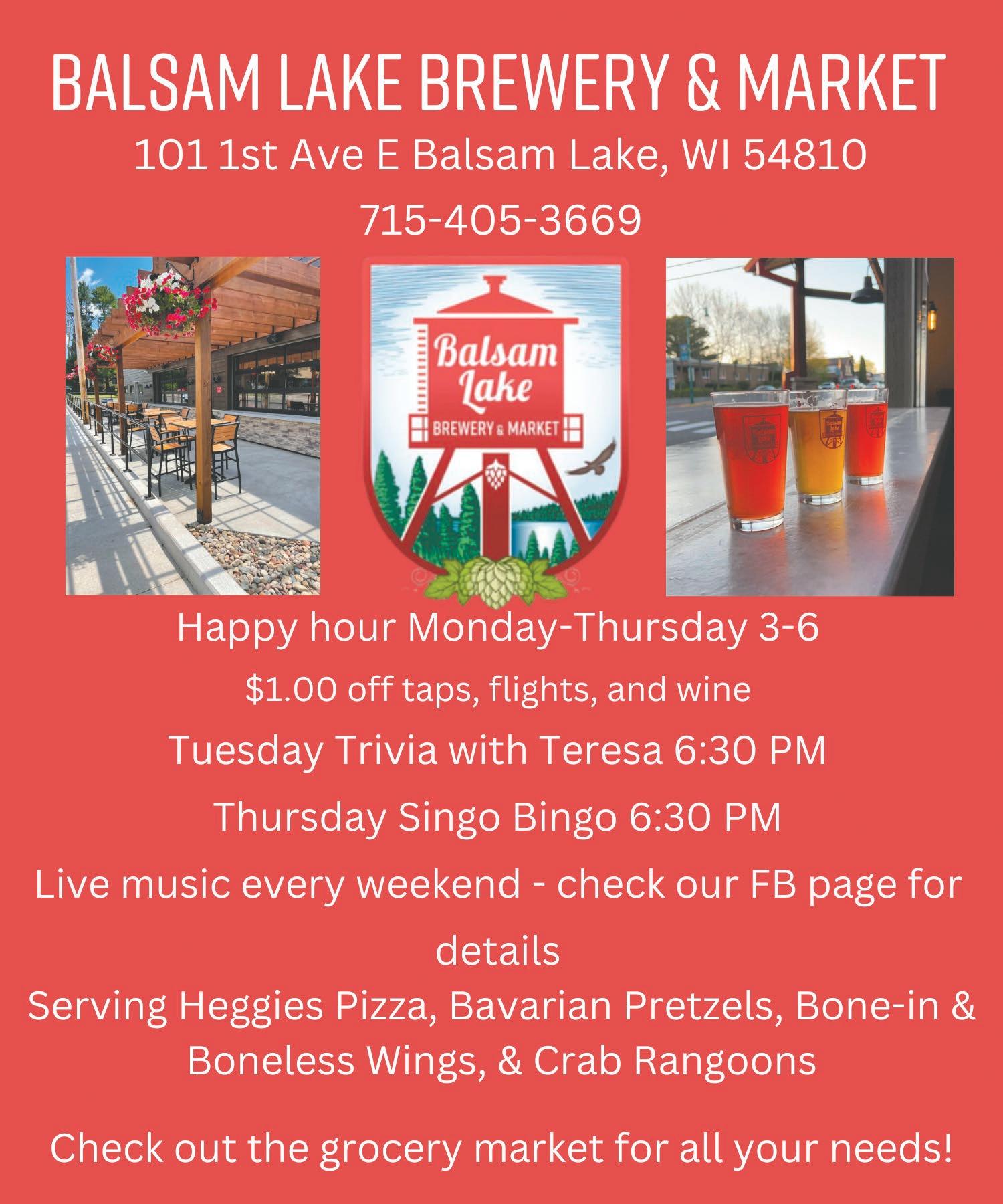 Welcome to beautiful Balsam Lake, a village living in natural harmony. Established in 1905 the Village of Balsam Lake rests on the southwest shore of Balsam Lake in one of the most prime tourist locations of northwest Wisconsin. Whether you are looking to relax or take part in a wide variety of activities, both on and off shore, the Village of Balsam Lake is the place for you! The Village is nestled on the largest lake in the area, (2,054 acres), which is teeming with fish to satisfy the most avid of anglers. The unique shoreline stretches 65 miles and the lake is dotted with picturesque islands and bays. Fine Dining and casual eateries abound and over 50 businesses provide a vast array of services.