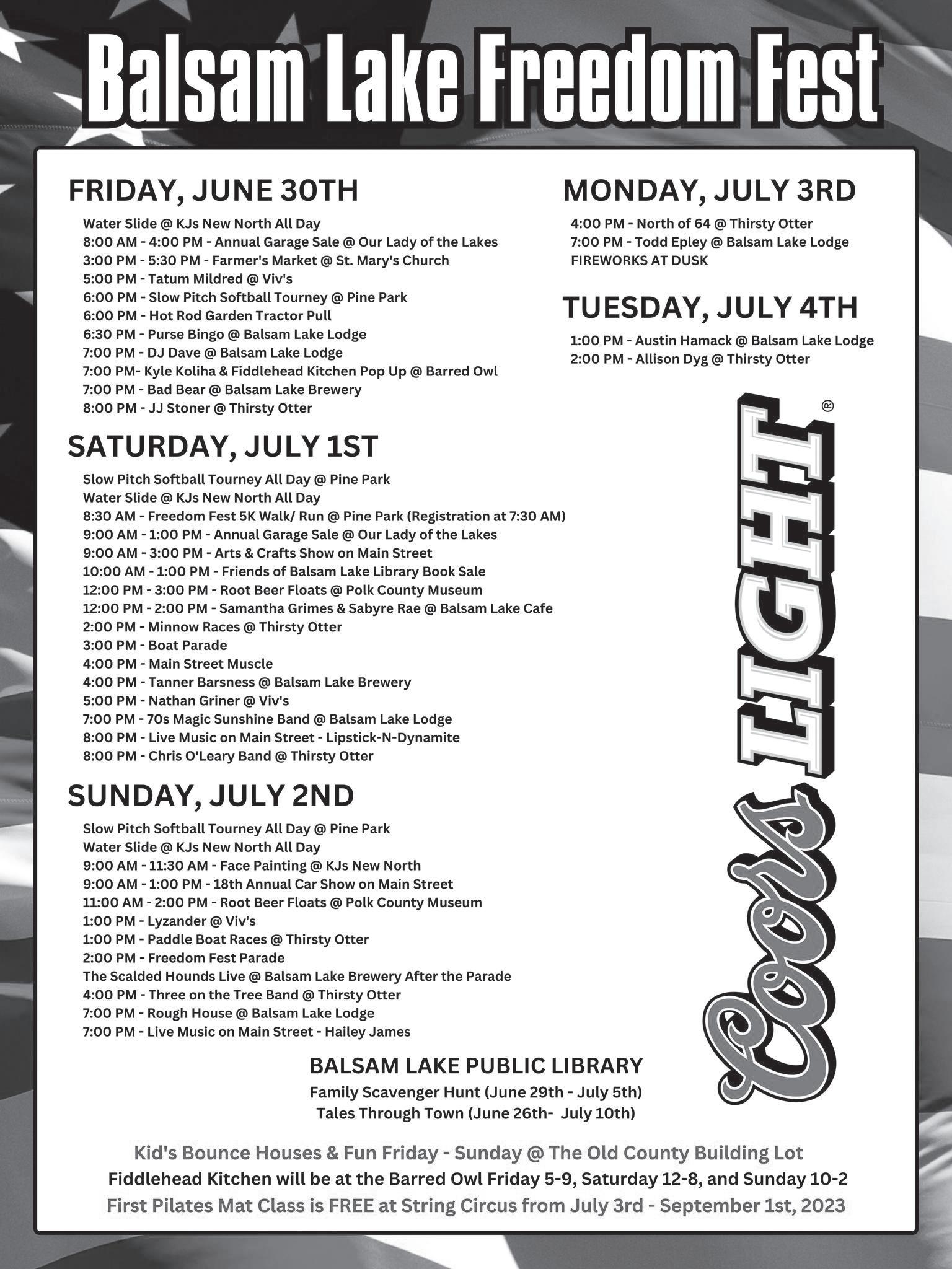 Sentinel Publications: Amery Free Press, Baldwin Bulletin, Burnett County Sentinel, Country Messenger & Osceola Sun L KER U.S. POSTAGE PAID MAILED FROM ZIP CODE 54001 PERMIT NO. PI24160 Vol. 2023 • No. 3 • June 23 – July 7, 2023 FREE Featuring... BALSAM LAKE BONE LAKE Also Included: Owens Family • Ticks • Lakeside Landscaping • Recipes Sunnyside Marina • Walleye • Memory Days • Wannigan Days • Freedom Fest