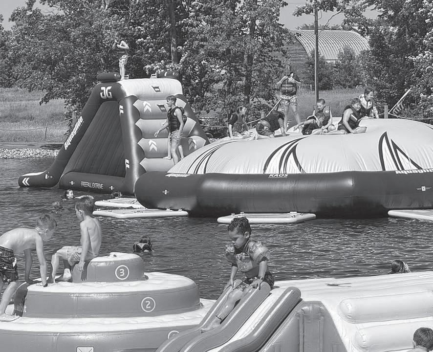 sure what to expect from campers and visitors. She wouldn’t say it started slow, but at the beginning of summer, it was wet and cold. Around the Fourth of July, things started to heat up, both figuratively and literally. Since then, it has been nonstop with visitors. However, what surprised Jarchow the most was the incredible support from the community for the aqua park. Now, it’s been enjoyable to watch because of everyone’s positive attitude toward the new feature.