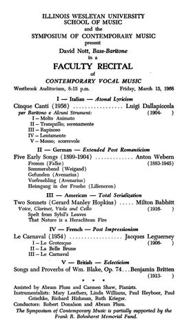FACULTY RECITAL of CONTEMPORARY VOCAL MUSIC Westbrook Auditorium,