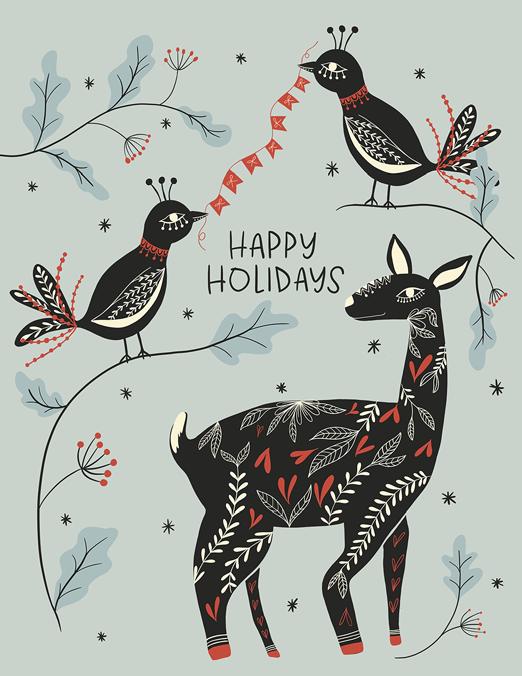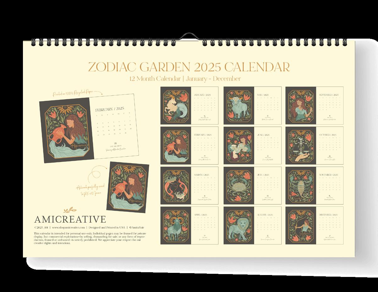 17” x 11” wall calendar featuring original illustrations by Amita Nair black coil bound with hanging loop • 100% Recycled Paper • printed in the USA $18 Wholesale • Minimum 4 per SKU