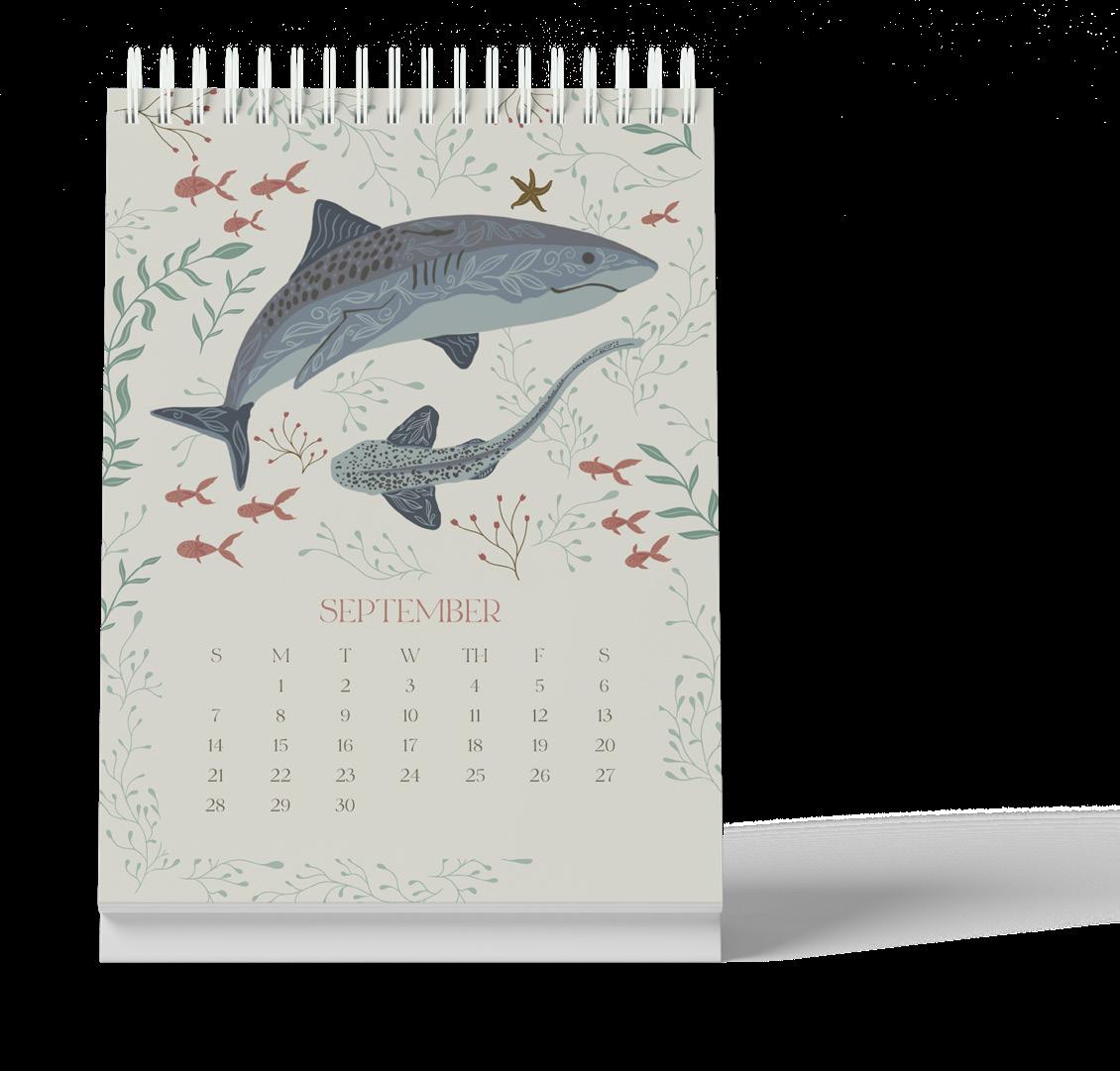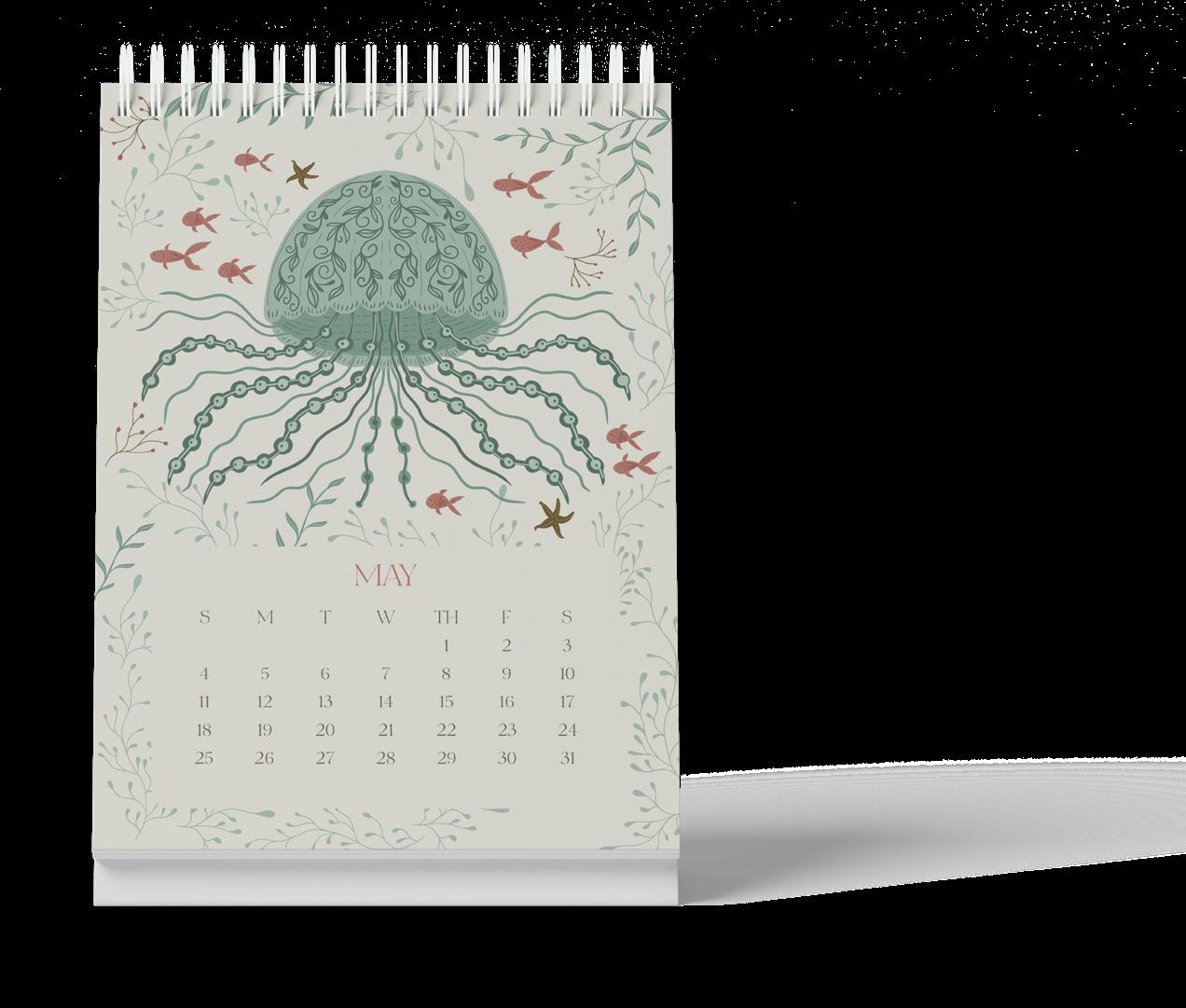 6” X 8.25” desk calendar featuring original illustrations by Amita Nair white coil bound with build in stand • printed in the USA