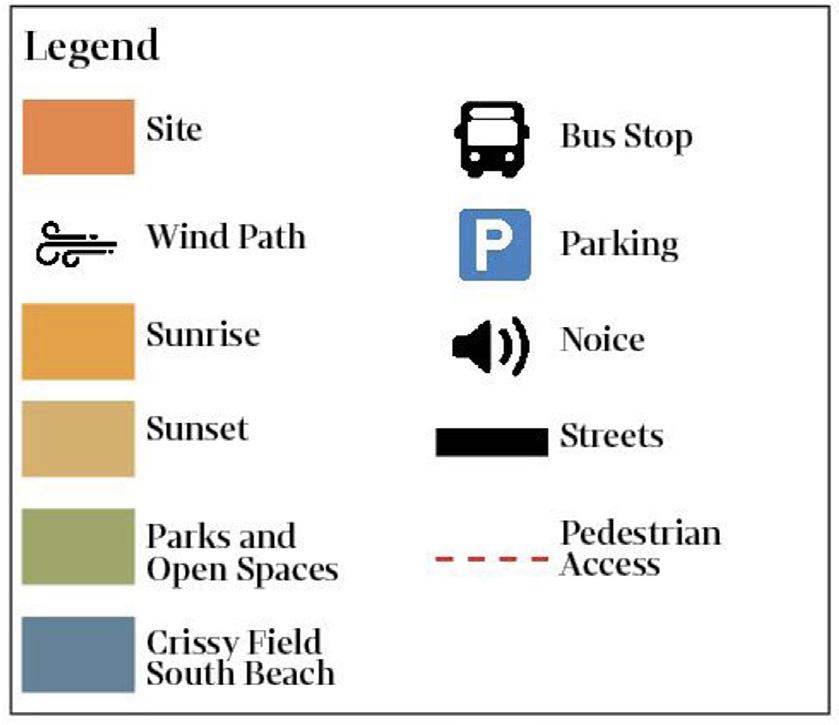 This building has multiple parking lots, and different points to access the main roads, Sheridan Avenue and Graham Street. When it comes to public transportation it is a different story, like most of the Presidio Neighborhood, the site is only accessed by two bus lines that pass through the site making it difficult and slow to get to and from the site.
