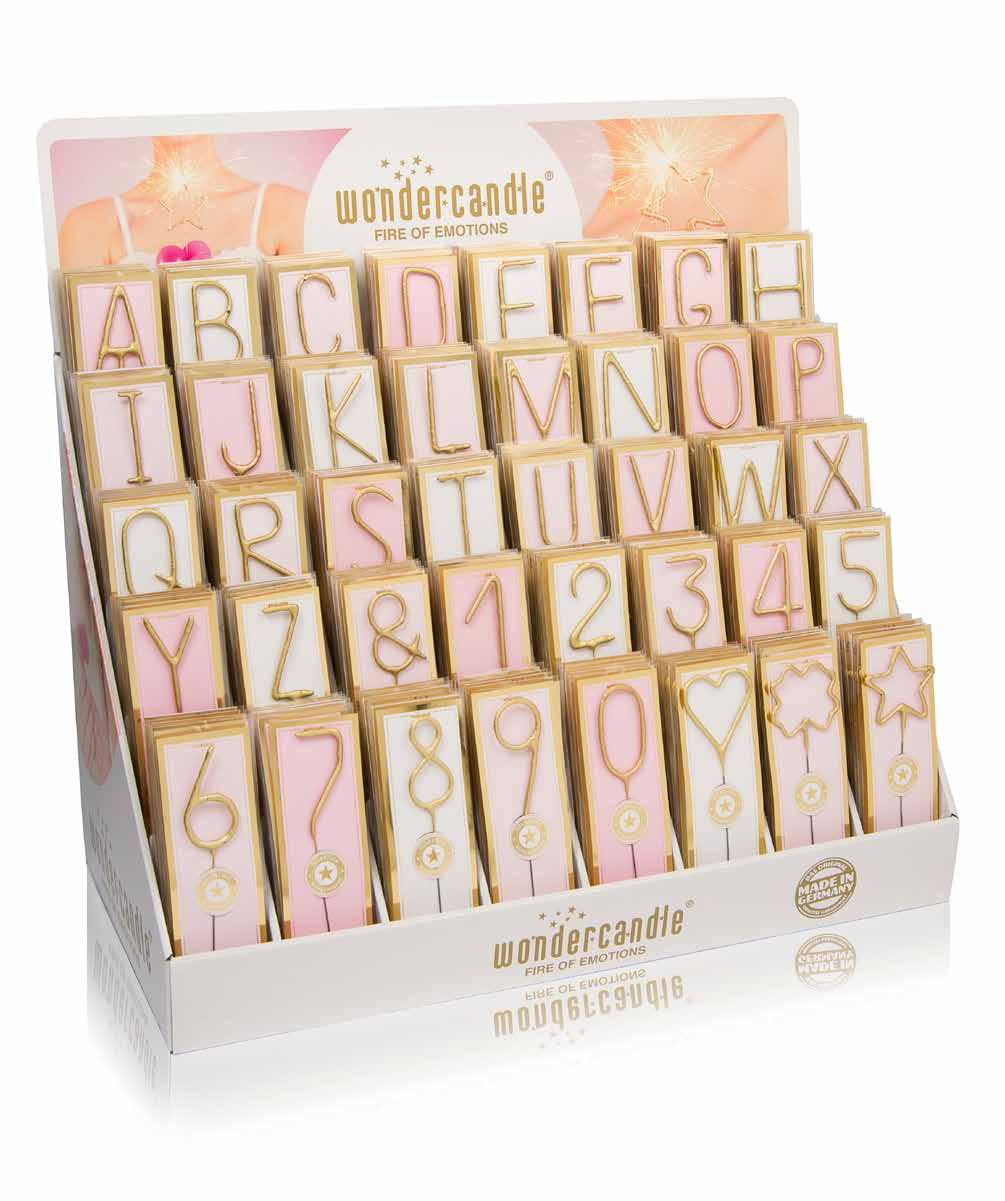 • Large display – golden sparklers (numbers 0–9, letters A–Z, heart, star, four-leaf clover and ’&’ symbol)