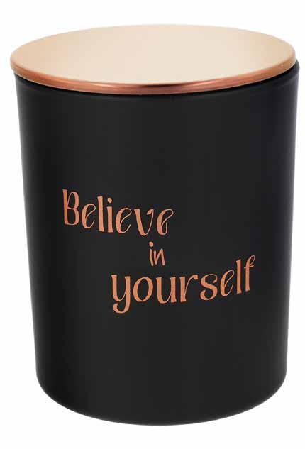 A rose gold lid and a laser cut sticker add luxury to the trendy matte black glass. All black message candles are Gin & Tonic scented.