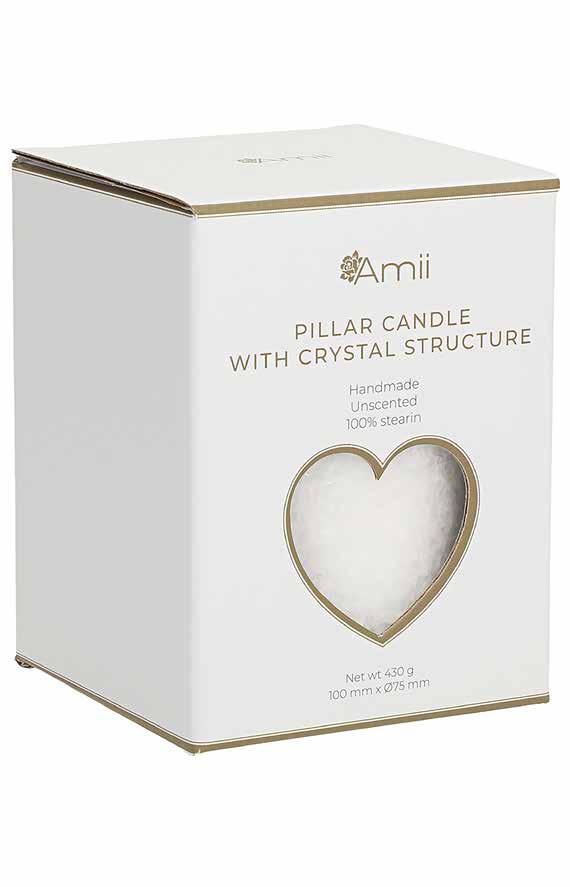 Every handmate unscented pillar candle with a crystal structure is packed in a gift box. Suitable for allergy sufferers.