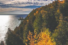 • The forest that occupies much of Mackinac Island State Park o ers many miles of trails that take you right through stunning fall color. Martin recommends Tranquil Blu Trail, which winds along the cli ops on the east side of the island overlooking Lake Huron. On the other side of Mackinac Island, west of Wawashkamo Golf Club, Partridge