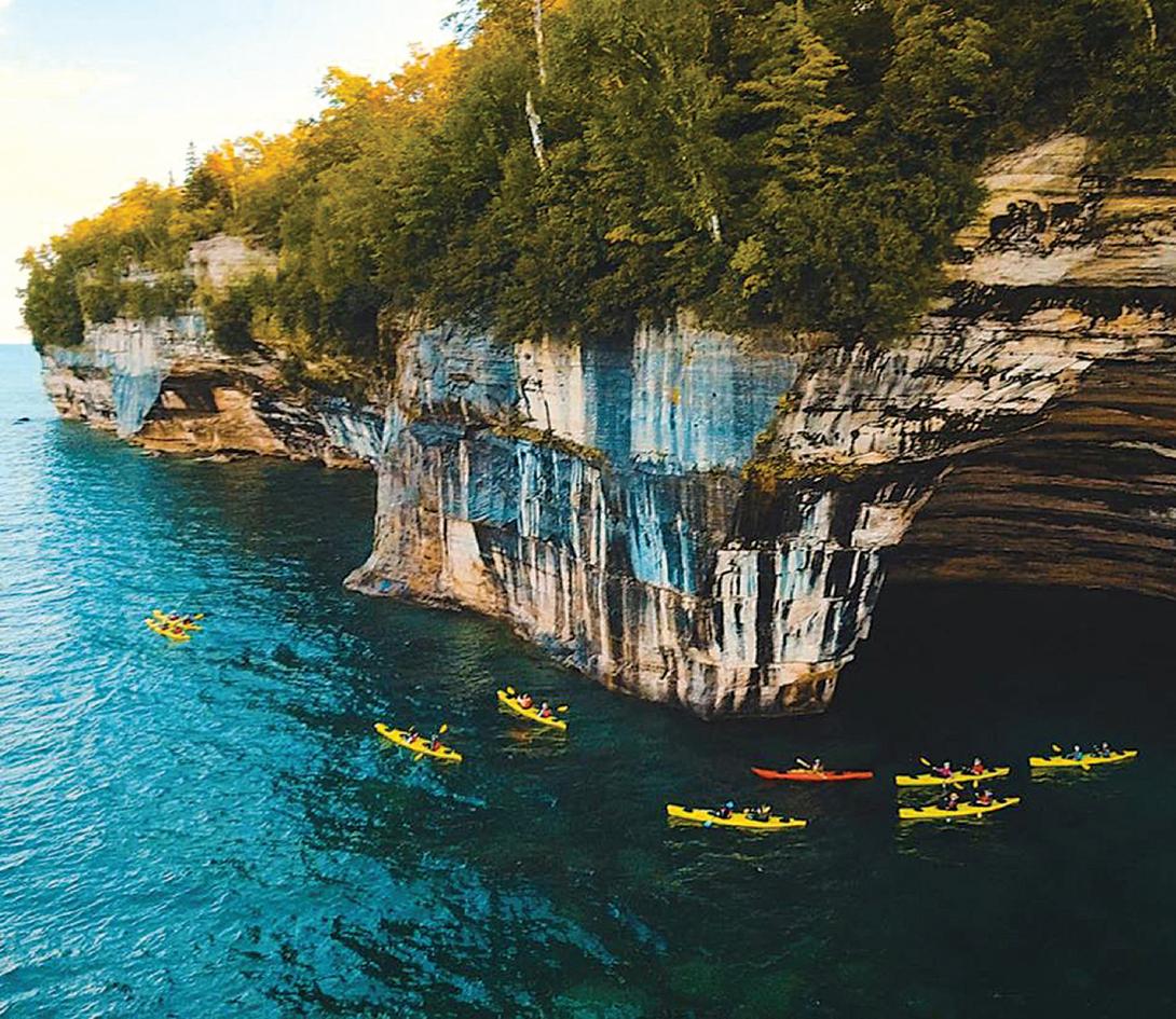 “If you want the best experience and the most incredible views of the cliffs, you’ve got to get out on the water to see them,” said Cori-Ann Cearley president of the Munising Visitors Bureau. “When you’re on a trail, you’re only seeing it from the top down, or from a certain vantage point that has “If you’re on the water, you’re looking at the whole thing and getting Water experiences in the area vary from kayak tours to larger tour boats that continue into the fall months, but visitors should be sure to check the schedules of outing