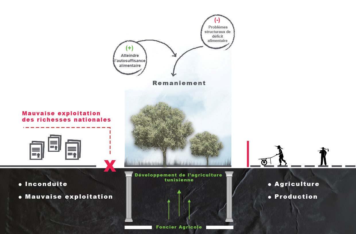 La Tunisie est un pays agricole, mais l’agriculture et la paysannerie ont été marginalisées sur des décennies ce qui engendre l'appauvrissement général du monde rural. Cette marginalisation a favorisé l’exode rural vers les villes côtières, particulièrement Tunis et a provoqué la naissance de ceintures périphériques où l’étalement urbain avance sans maîtrise, détruisant les terres agricoles