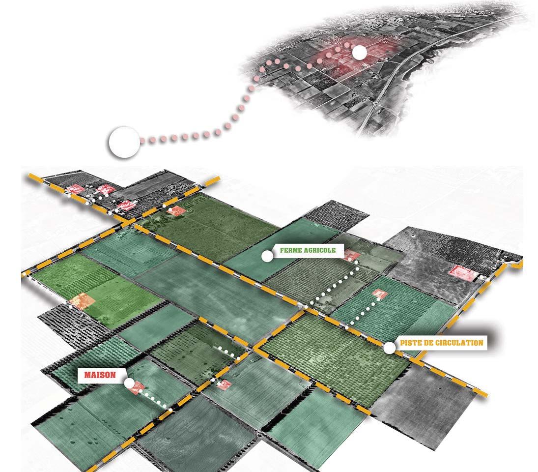 Le premier angle sera examiné à travers les documents et les publications disponibles, ainsi qu’à travers l’observation directe du site. Le second sera observé par des rencontres et des entretiens avec les paysans et leur accompagnement dans les démarches de contestation du changement de vocation appliqué à leurs terres. l’échelle de la parcelle et de son voisinage permettant de la connecter à la ville tout en durablement cette parcelle agricole dans la ville.