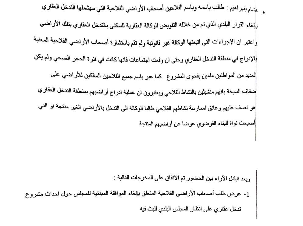 En 2010, l’ensemble de cette parcelle a été intégré dans le Plan d’Aménagement Urbain de Sidi Hssine, transformant cet espace agricole productif en zone “bonne à construire” et en “espaces verts”, le changement de vocation s’est fait à l’insu des paysans qui, depuis, expriment leur refus et revendiquent le droit de préserver leurs terres.